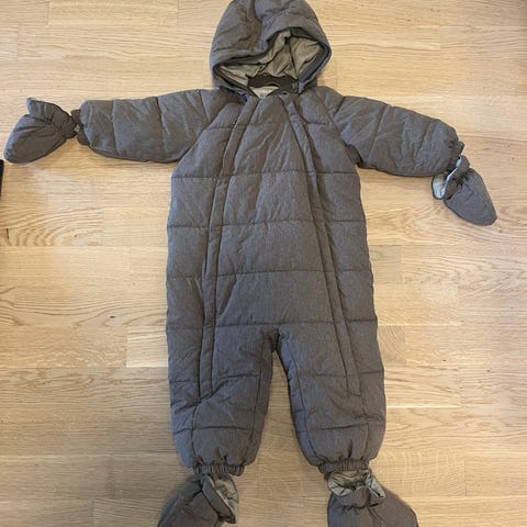 Nesten ubrukt vinterdress med avtagbare votter selges. Str. 74/80.