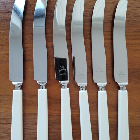 Skaugum dessertkniver hvit skaft retro. Ti stk