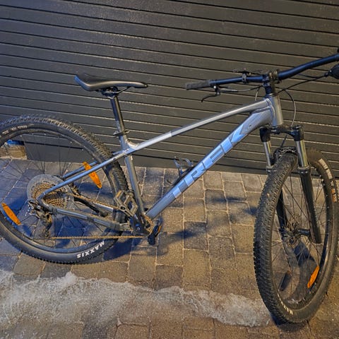 Sykkelen er godt brukt, men har nettopp vært på service hos sykkelverkstedet Tråkk 9000. Her ble det byttet kassett og kjede, bremseklosser bak, hjulet bak ble rettet og dekk foran og bak ble byttet. Pris med arbeid var over 5000,-.