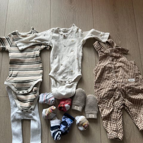 Klespakke kun kr 75! Bodyer og sokker, størrelse 0-2 måneder