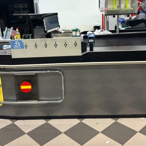 Alt fungerende og i bra stand. Kassedisk til matbutikk med belter.