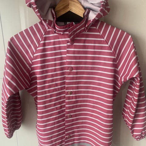 Rosa regnjakke, nesten ubrukt