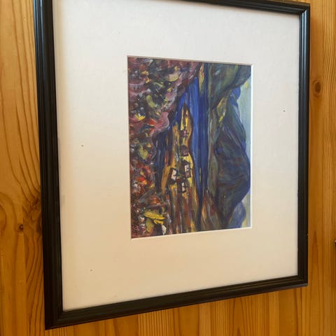 Eva Langaas Lito. Innrammet med dobbelt passepartout og i en sort klassisk ramme.