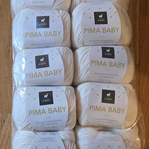 DSA Pima baby garn,11 hele nøster pluss rest på 32 g i den lyse.