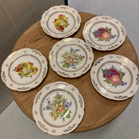 Uten nag og krakelering. Litt gullslitasje på kanten.