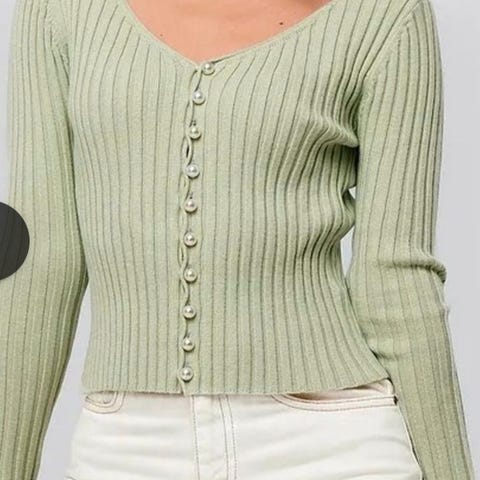 veldig fin lys blå - farge. Cardiganen har en super-myk tekstur med perle-lignende knapper, og er ideell for bruk i kjøligere vær. Kan brukes til hverdag og fest. Passer både XS/S stretchy.