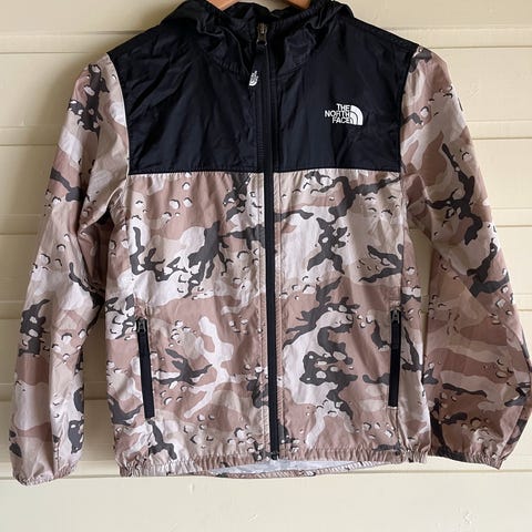 Lite brukt The North Face tynn et lags vindjakke med lommer og hette til gutt str. L/14-15 år. Ingen skader eller slitasje.