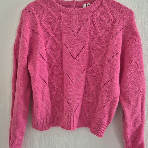 Kjempefin strikka genser fra New look i svak rosa. Størrelse M, men passer nok også L, da den er litt stor i størrelsen.
