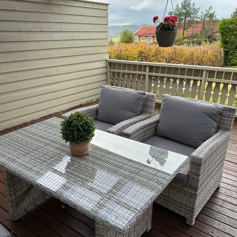 Selger to stk utesofaer (uten puter), plass til totalt 6 personer. Og ett tilhørende utebord. Solid og bra, hjemmesnekret av en snekker.