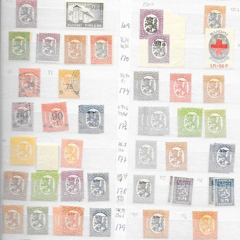 Vakker lot fra Finland utgitt 1930 - 50. Hovedsaklig postfriske merker, noen hengslet eller stemplet.