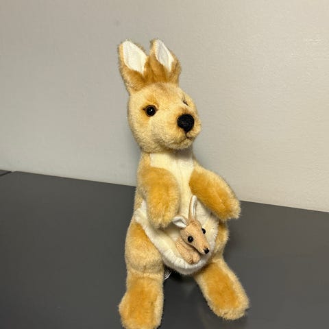 Kangaroo med baby, ca 45 cm høy. Aldri brukt