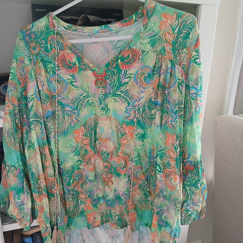 Ubrukt fin bluse i nydelige grønnfarger str Onesize m/tag. Dreamy Silk. Nypris kr 1.199,- . 55% rayon og 45% viskose. Selges kun fordi jeg har stappfullt skap 😅 og denne har ligget ubrukt i over 2 år og velger da å selge videre.