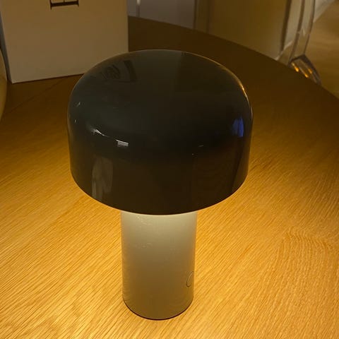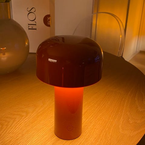 Lite brukt bordlampe fra Flos, type Lampadina i fargen oransje/svart. Høyde 24cm, diameter 12,5.