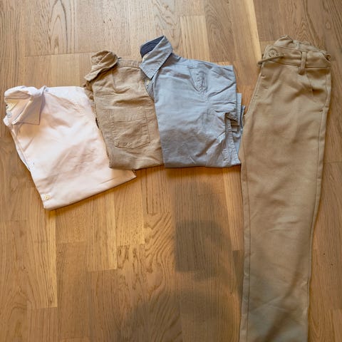 2 langermede skjorter, 1 kortermet skjorte, 1 penbukse