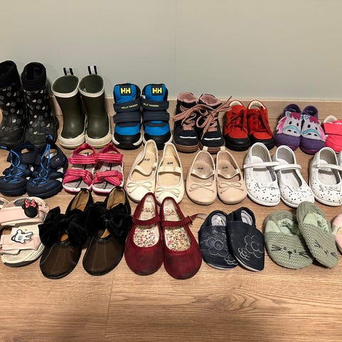 Har masse sko etter jentene mine.