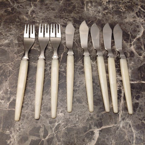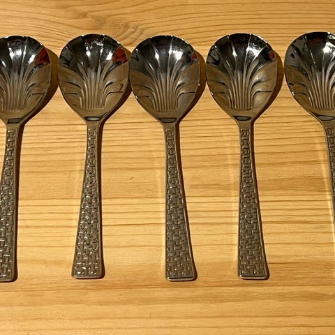 Fine dessert-skjeer 10 stk Vintage med Hvitt rillet skaft Kr 90,- samlet
