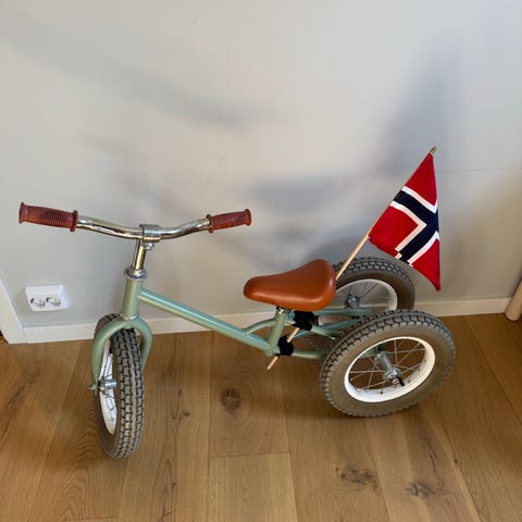 Godt brukt barnesykkel. Passer for barn mellom 5-8 år. Lite rust. Oppbevart i garasje når den ikke har vært i bruk.