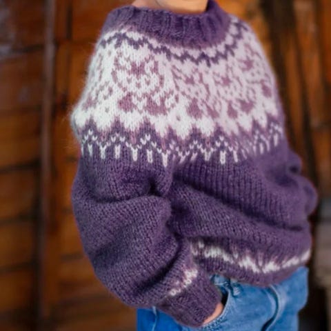 Helt nydelig god og varm hjemmestrikket genser selges. Passer muligens 7-11 år?