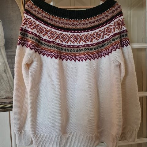 Håndstrikket jekke i Heilo fra Dale. Flotte jordfarger i brun grønt, lilla med mer