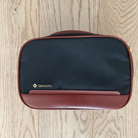 En vintage Samsonite bag i lær og nylon. Farge cognac med skuldrereim. Mest sannsynlig 80 eller 90 tal med kul retro look. SIZE 38X27X16 CM