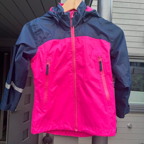 Jakken er veldig pent brukt, ingen hull.Reflex strippene på armene begynte å forsvinne litt (se bildene), ellers ingen slitasje.
