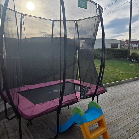 Kjøpt for 7 år siden men ikke brukt (eller montert opp) de to siste årene. Lagret innendørs fra september til mai de årene den var i bruk. Da ble den montert opp og ned hhv vår/høst