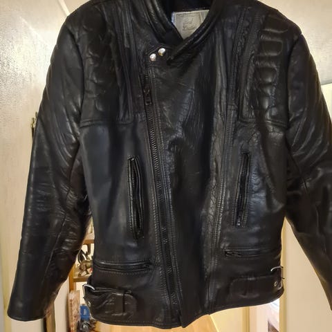 Pent brukt, tøff jakke fra Poco Loco, lite tegn til slitasje i foret heller ikke i skinnet. Alle glidelåser virker som de skal.