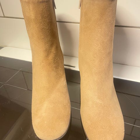 Lite brukt Bullboxer ankelboots med høye hæler i beige farge.