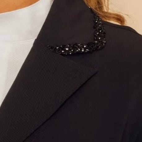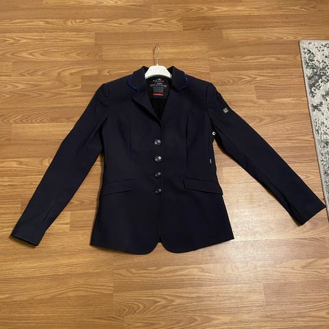 Mørkeblå, super fine steiner på kragen og knappene som virkelig skinner på stevneplassen!