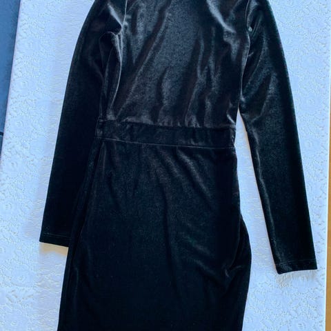 Fin svart kjole som er anvennelig og klassisk! Sparkly detaljer under bysten gir den likevel en liten edge. V-formet utrigning. Flatterende snitt! Den perfekte LBD! Størrelse medium. Ukjent merke.