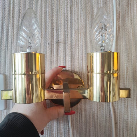 Gammel vintage / retro bordlampe i melkehvitt opalinglass og messingfot.