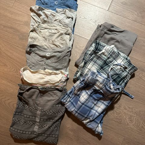 Klespakke i høstens/ vinterens farger. 2 kjoler, 3 bukser.2 bluser, 3 gensere, 1 t-skjorte, 3 jakker . Fra ubrukt til pent brukt. Str S/M eller tilsvarende. Her blir det mange forskjellige antrekk . Hbo 469