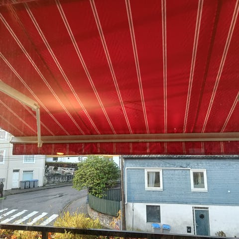 Vart litt bøyd under en storm. Men kan enkelt rettes av en handyman.