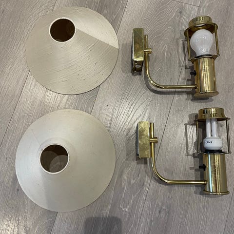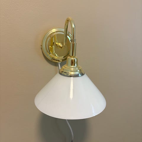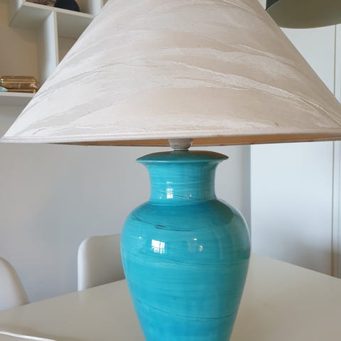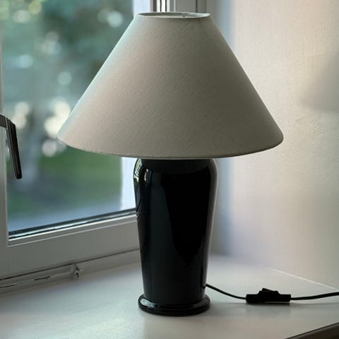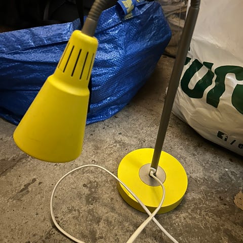 Lampen har ingen skader eller merker og fungerer som den skal. Ca 3 meter lang ledning med bryter.