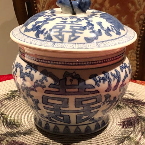 Dekorativ porselenskrukke