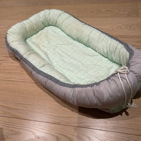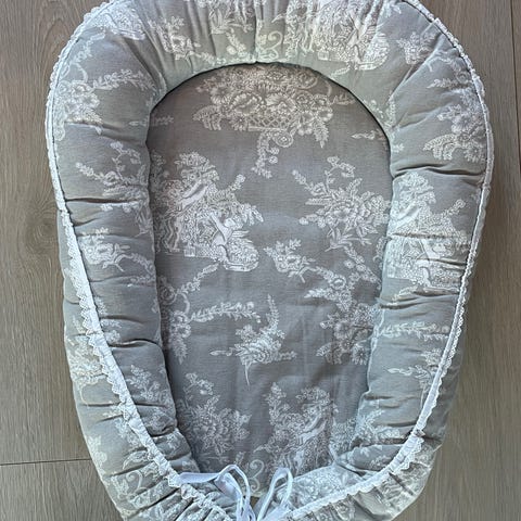 Hjemmesydd babynest laget med stoff i 100% bomull. Fyll i kantene. Plass til minimadrass og eller tisselaken inni.