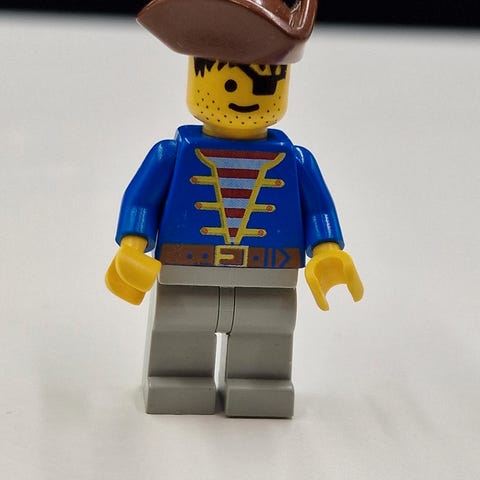 Lego pi006 Pirate Blue Jacket White Legs, Black Pirate Triangle Hat