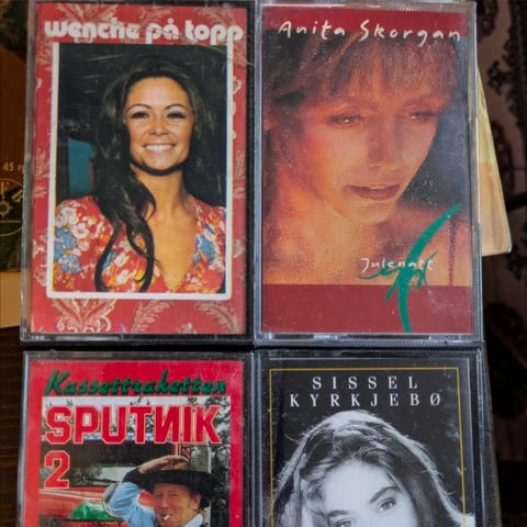 Har ikke kassettspiller til å teste med, så ingen garantier utover visuell sjekk av at tapen ser ok ut. Noen av kassettene er godt brukt og bærer preg av det.