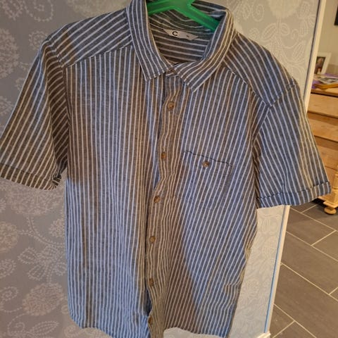 164: kortermet skjorte i linblanding. Brukt en gang, som ny.