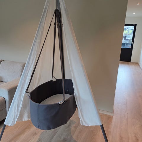 Badekar til barn, følger med liten stol til å putte baby oppi før de kan sitte selv og et stativ. Funker like bra uten som med stativ. Den er i god stand.