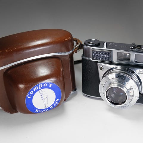 Retro Kodak Retinette kamera som kommer med en National PE-243 blits.
