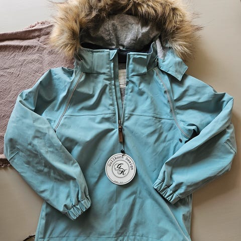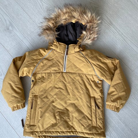 Gul Gullkorn anorakk i str 122 selges, ikke hull men flekker 🙂
