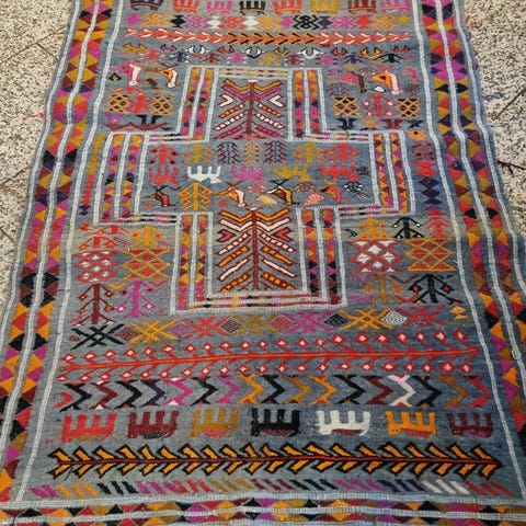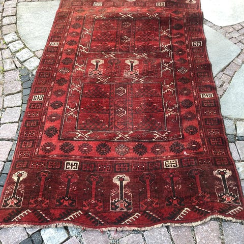 Godt brukt, bør renses. Mål 130 x 85. Slitt i kantene.