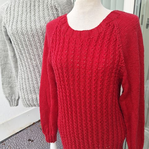 Nystrikket raglan-genser i dobbelt Alpaca/silk garn, myk og kløfritt garn.