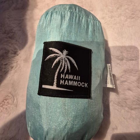 Helt ny Hawaii Hammock enkel hengekøye i rød farge. Laget av slitesterkt materiale, lett å transportere og sette opp. Perfekt for utendørs bruk, camping eller avslapning i hagen. Kommer med opphengsutstyr for enkel montering. Nypris 299,-