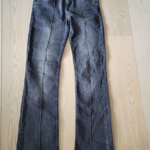 Selger et par grå Bershka-bukser i str. 36. De har en fin passform med lett sleng og sitter godt på. Buksene er lite og pent brukt, uten slitasje eller skader, og fremstår i god stand. Selges for 125 kr.