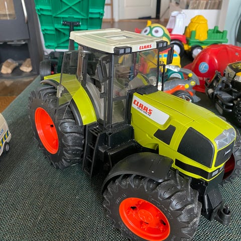 Uteleker; sykler, biler, gravemaskin, traktor, plog, sil, spande, rive, bøtte
