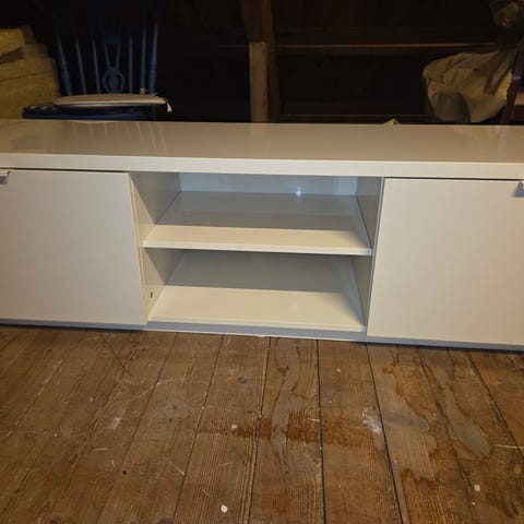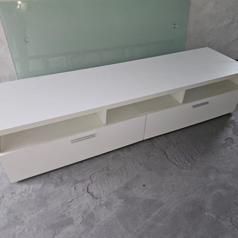 Benken er i god stand og har to romslige skuffer med god oppbevaringsplass.