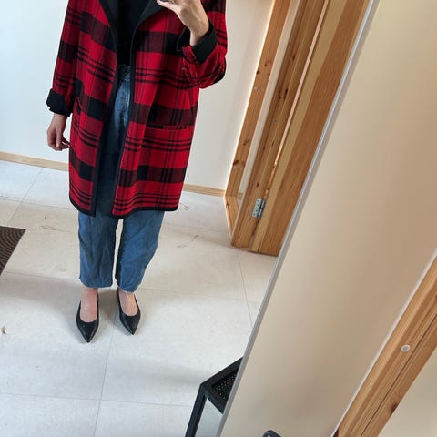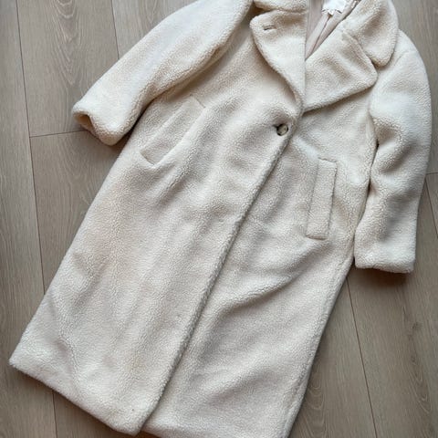 Selger pent brukt jakke da den dessverre ikke passer lenger. Super til bruk på vår og høst siden den har litt lengde og er enkel å slenge utenpå og lukke med belte. To lommer i grei størrelse.