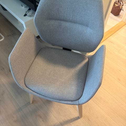 5000 kr pr stol og 20 000 for alle fire. Selges samlet. Nypris er 7395 pr stol og det er ofte 10-15 ukers ventetid.